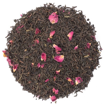 Art.Nr 931- Rosentee mit Blüten Herkunft:China Erntezeit:Sommer Zutaten:Schwarzer Tee (96 %), Rosenblüten (4 %), Aroma, Jasminblüten